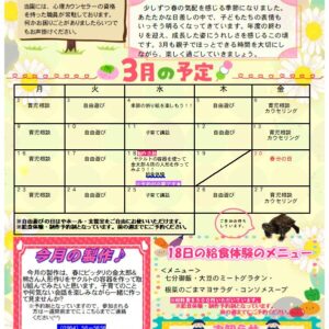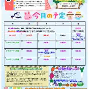 大切さを伝えています。食べ物の大切さを知り、正しい味覚を育て、食に必要な生活習慣を身につける「食育」に力を入れています。提供される給食はごはんとお味噌汁を基本としたメニュー。契約栽培の玄米・日本古来の製法による味噌や醤油・安全な製法の油・無添加の調味料など…安全性にこだわった栄養価の高い食材ばかりです。おいしくいただけることに感謝を込めて、食事のあいさつも大切にしています。